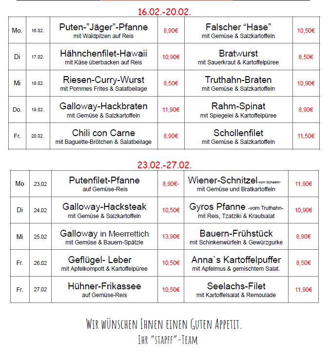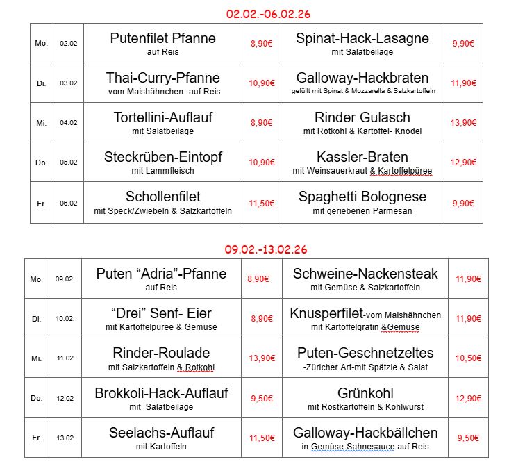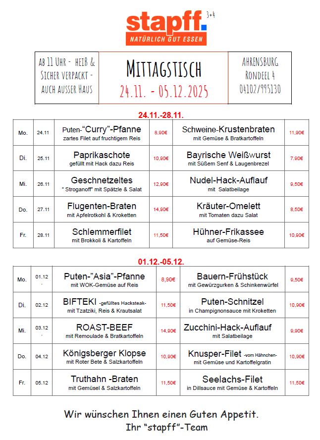 Bestellungen nehmen wir telefonisch bis 11.00 Uhr entgegen.