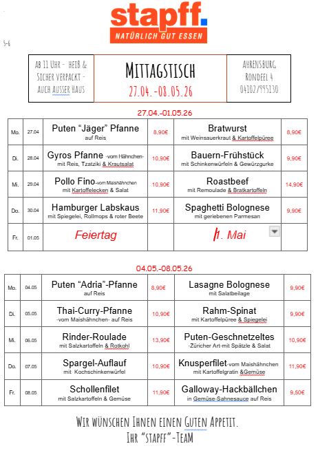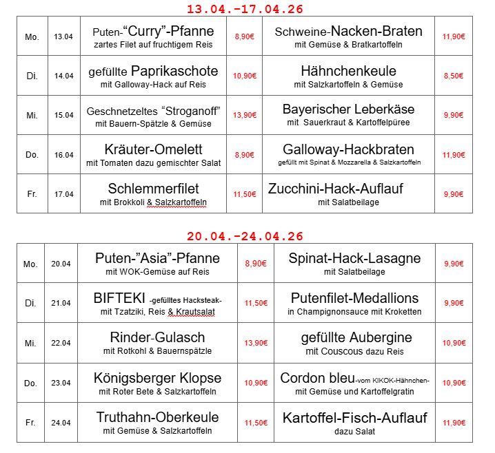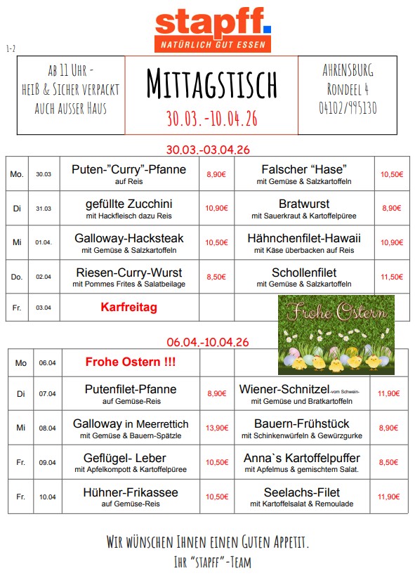 Bestellungen nehmen wir telefonisch bis 11.30 Uhr entgegen.