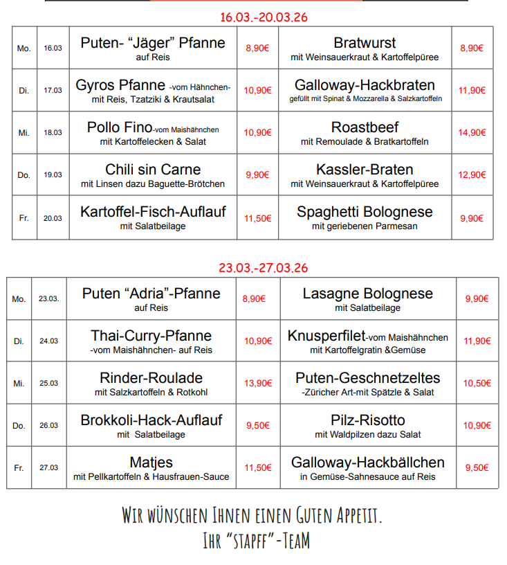 Unser aktueller Mittagstisch